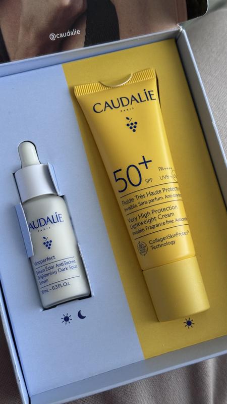 - Viniferina : Ingrediente patentado por Caudalie procedente de la savia de vid, que lleva a cabo una acción antimanchas excepcional, 62 veces* más eficaz que la vitamina C y un 43% más eficaz que la niacinamida al 10%**. *Prueba in vitro de la acción inhibidora de la Viniferina sobre la tirosinasa. **Prueba ex-vivo de la cantidad de melanina en la epidermis.