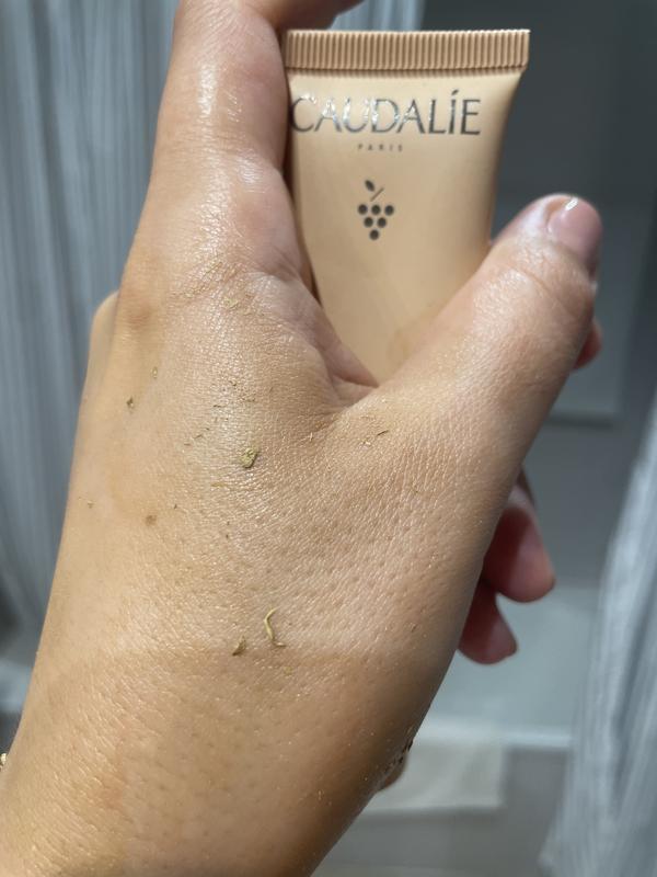 Hola, lamentamos mucho que nuestra crema con color Vinocrush no haya cumplido con tus expectativas. Te invitamos a usar menos cantidad de producto, si aplicas un serum antes, te invitamos a esperar unos segundos antes de aplicar la crema con color. Quedamos disponibles si tienes cualquier duda. Un saludo, Equipo Caudalie.
