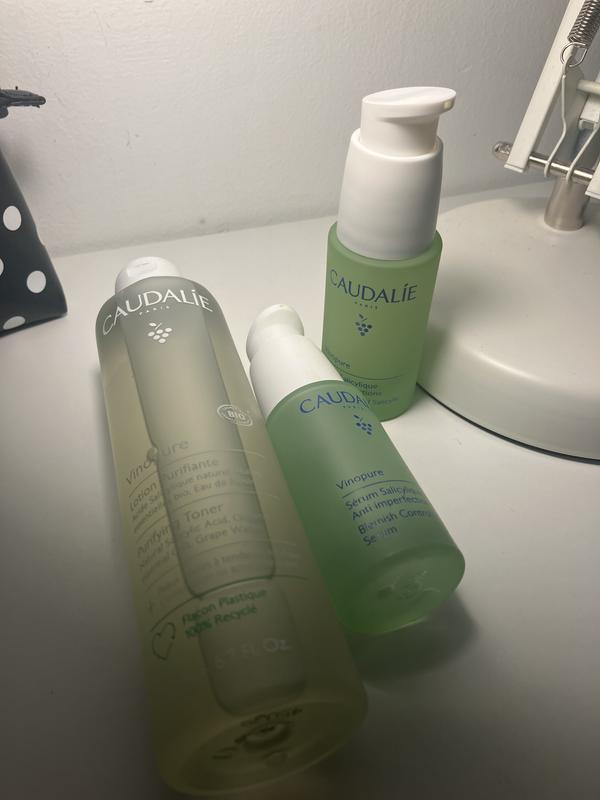 El Tónico Vinopure minimiza los poros, reduce las imperfecciones y matifica los brillos. La piel queda purificada, matificada, limpia y nítida.